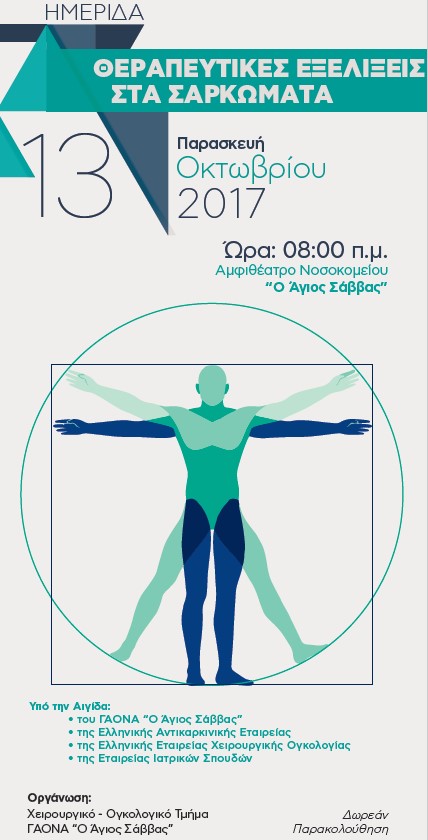Πραγματοποιήθηκε στο αμφιθέατρο του Νοσοκομείου «Άγιος Σάββας» την Παρασκευή 13 Οκτωβρίου 2017 η 13η ημερίδα με θέμα «Θεραπευτικές εξελίξεις στα σαρκώματα».