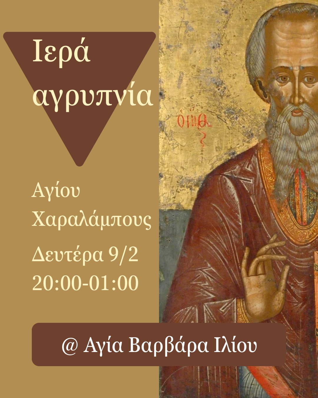 Αγρυπνία Αγίου Χαραλάμπους στην Αγία Βαρβάρα Ιλίου