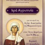 Αγρυπνία Αγίας Αναστασίας στον Άγιο Δημήτριο Πετρ.
