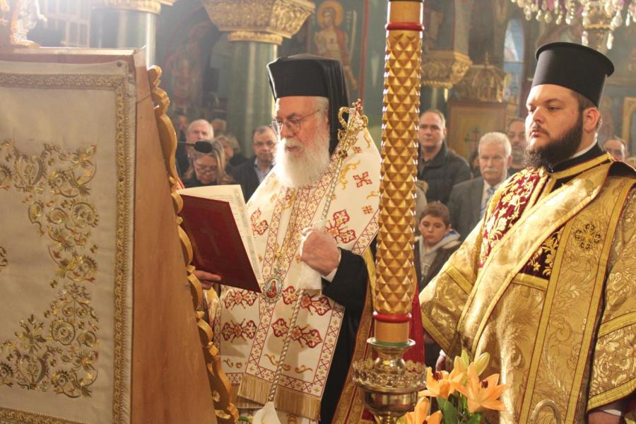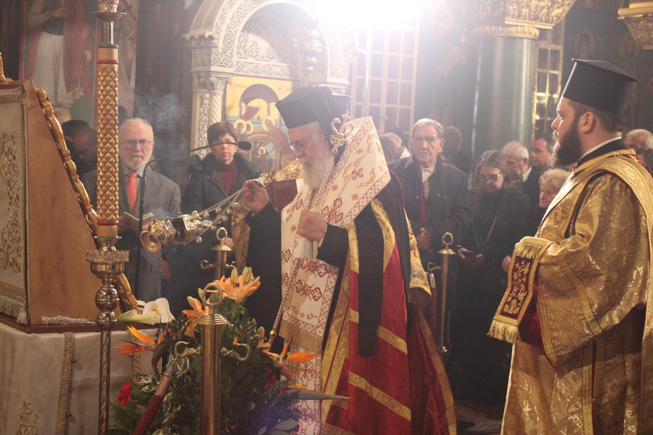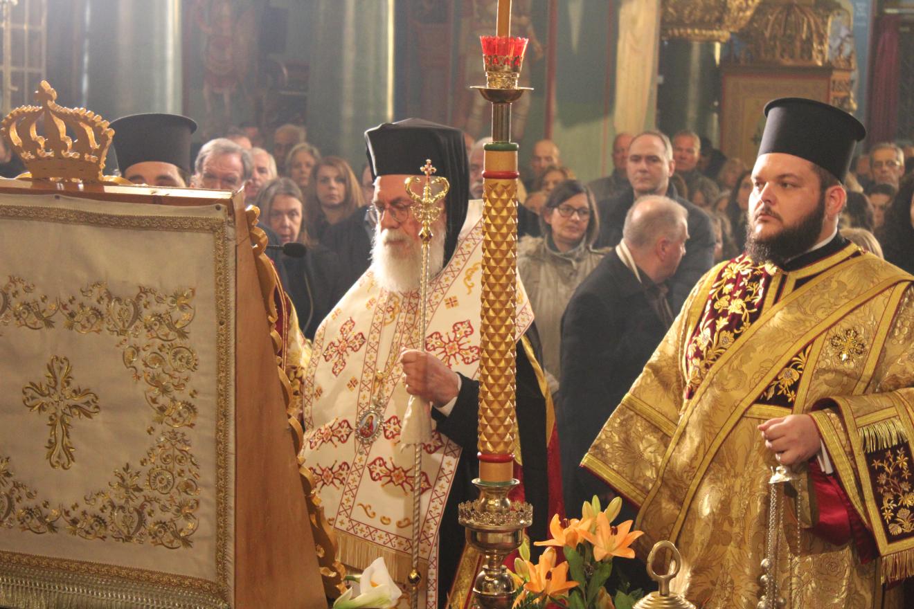 Στο τέλος της Ακολουθίας με αφορμή τον στίχο του Καβάφη: «απέλιπεν Θεός Αντώνιον», που αναφέρεται στη νίκη του Οκταβιανού Αυγούστου επί του Αντωνίου, απευθυνόμενος στους πιστούς είπε πως αντίθετα ο Θεός δεν μας εγκατέλειψε, αλλά μας περιμένει το Μεγάλο Σάββατο το βράδυ να υμνήσουμε την Ανάστασή Του, η οποία νέκρωσε τον θάνατο και μας χαρίζει την αιώνια ζωή, ενώ ευχήθηκε σε όλους καλή δύναμη και αγωνιστικότητα για το υπόλοιπο της Μεγάλης Τεσσαρακοστής.