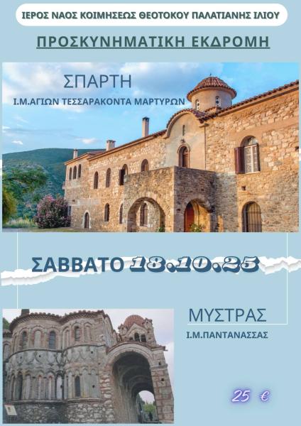 Η ενορία της Κοιμήσεως Θεοτόκου Παλατιανής Ιλίου θα πραγματοποιήσει ημερήσια εκδρομή στη Σπάρτη, στην