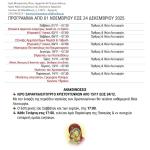 Πρόγραμμα ακολουθιών Νοεμβρίου 2025 και Σαρανταλείτουργο ενορίας Κοιμήσεως Θεοτόκου Αχαρνών