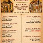 Πρόγραμμα ακολουθιών Ιανουαρίου 2026 ενορίας Αγίου Διονυσίου Αχαρνών