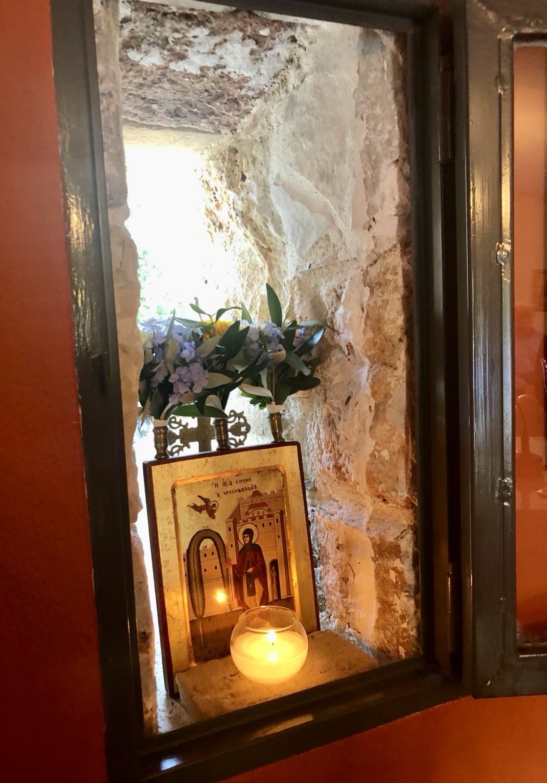 Αγρυπνία τελέστηκε στο παρεκκλήσιο της Οσίας Ειρήνης Χρυσοβαλάντου, στις Αφίδνες, για την σύναξη της Παναγίας της Μυρτιδιώτισσας, την Παρασκευή 23/9/2016.