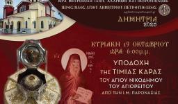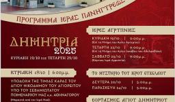 Από την Κυριακή 19 Οκτωβρίου έως την Τετάρτη 29 Οκτωβρίου θα διεξαχθούν τα «Δημήτρια 2025» στην ενορία Αγίου Δημητρίου Πετρουπόλεως, με την υποδοχή της τιμίας κάρας του Αγίου Νικοδήμου του Αγιορείτου και πολλές άλλες ακολουθίες.
