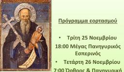 Το Εκκλησιαστικό Συμβούλιο του Ιερού Ναού Αγίας Αικατερίνης Ιλίου έχει την τιμή και την χαρά να σας προσκαλέσει στην Ιερά Πανήγυρη του Ιερού Ναού, η οποία θα τελεστεί κατά το παρακάτω πρόγραμμα:
