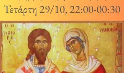 Νυχτερινή Θεία Λειτουργία θα τελεστεί στον Ιερό Ναό Αγίας Βαρβάρας Ιλίου, την Τετάρτη 29 Οκτωβρίου 2025, από 22:00-00:30, επί τη μνήμη των Αγίων Ζηνοβίου και Ζηνοβίας.