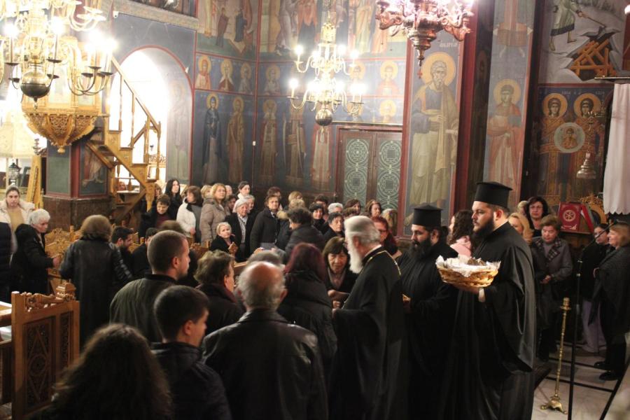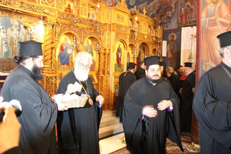 Στο τέλος της ακολουθίας ο Σεβασμιώτατος δεχόμενος κατά το έθος την συγγνώμη κληρικών και λαϊκών, οι οποίοι είχαν κατακλύσει τον Ιερό Ναό, τους μοίρασε μικρό ενθύμιο για την ακολουθία, προσφορά του Εκκλησιαστικού Συμβουλίου του Ιερού Ναού.