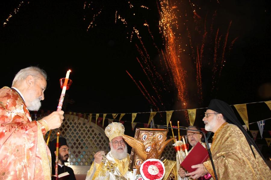 Μετά την απόλυση ο Σεβ. με τους ιερείς μοίρασαν αντίδωρο και πασχαλινά αυγά στους πιστούς, οι οποίοι είχαν κατακλύσει τον Ιερό Ναό ευχόμενοι το «Χριστός Ανέστη» και χρόνια πολλα