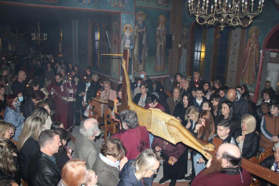 Μετά την έξοδο του Εσταυρωμένου και αρκετή ώρα μετά την απόλυση πλήθος ενοριτών προσκυνούσαν με ευλάβεια τον Τίμιο Σταυρό.