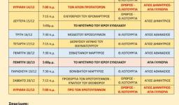 Η Θεία Λειτουργία των Χριστουγέννων θα τελεστεί στην 06:30 στον Άγιο Δημήτριο και την Αγία Γλυκερία και για δεύτερη φορά θα τελεστεί στις 10:30 (έως 11:30) στον Άγιο Δημήτριο Πετρουπόλεως.