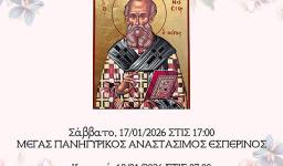 Την Τετάρτη 14.01.2026 θα τελεστεί στον Ιερό Ναό της Ζωοδόχου Πηγής Ιλίου βραδινή Θεία Λειτουργία επί τη μνήμη των Οσίων Παύλου του Θηβαίου και Ιωάννου του Καλυβίτου.
