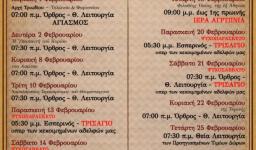 Την Κυριακή 1η Φεβρουαρίου 2026, ο Σεβασμιώτατος Μητροπολίτης Ιλίου, Αχαρνών και Πετρουπόλεως κ. Αθηναγόρας χοροστάτησε στον Όρθρο και τέλεσε την Θεία Λειτουργία στον Ιερό ενοριακό Ναό του Αγίου Τρύφωνα στο Καματερό, συμπαραστατούμενος από τους Αρχιμ. Αγαθάγγελο Κόκλα - Ιεροκήρυκα της Ιεράς Μητροπόλεως, τον π. Γεώργιο Θεοδωρόπουλο - Πρόεδρο του Εκκλ. Συμβουλίου του Ιερού Ναού και τους διακόνους του π. Άγγελο Μιχαλόπουλο και π. Καλλίνικο Ζωγράφο.