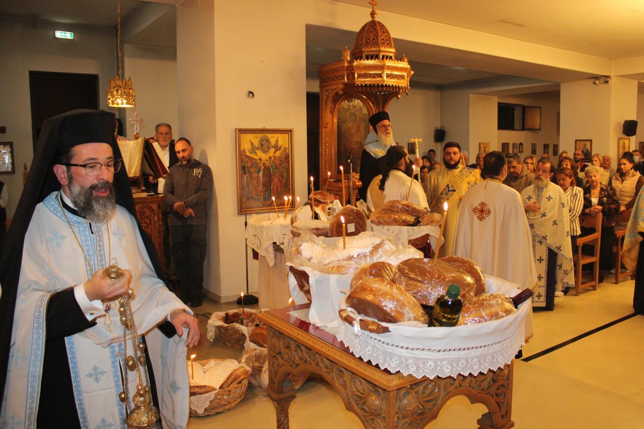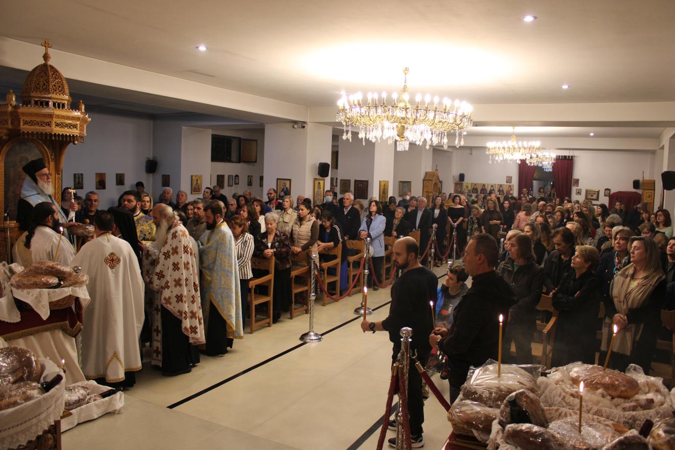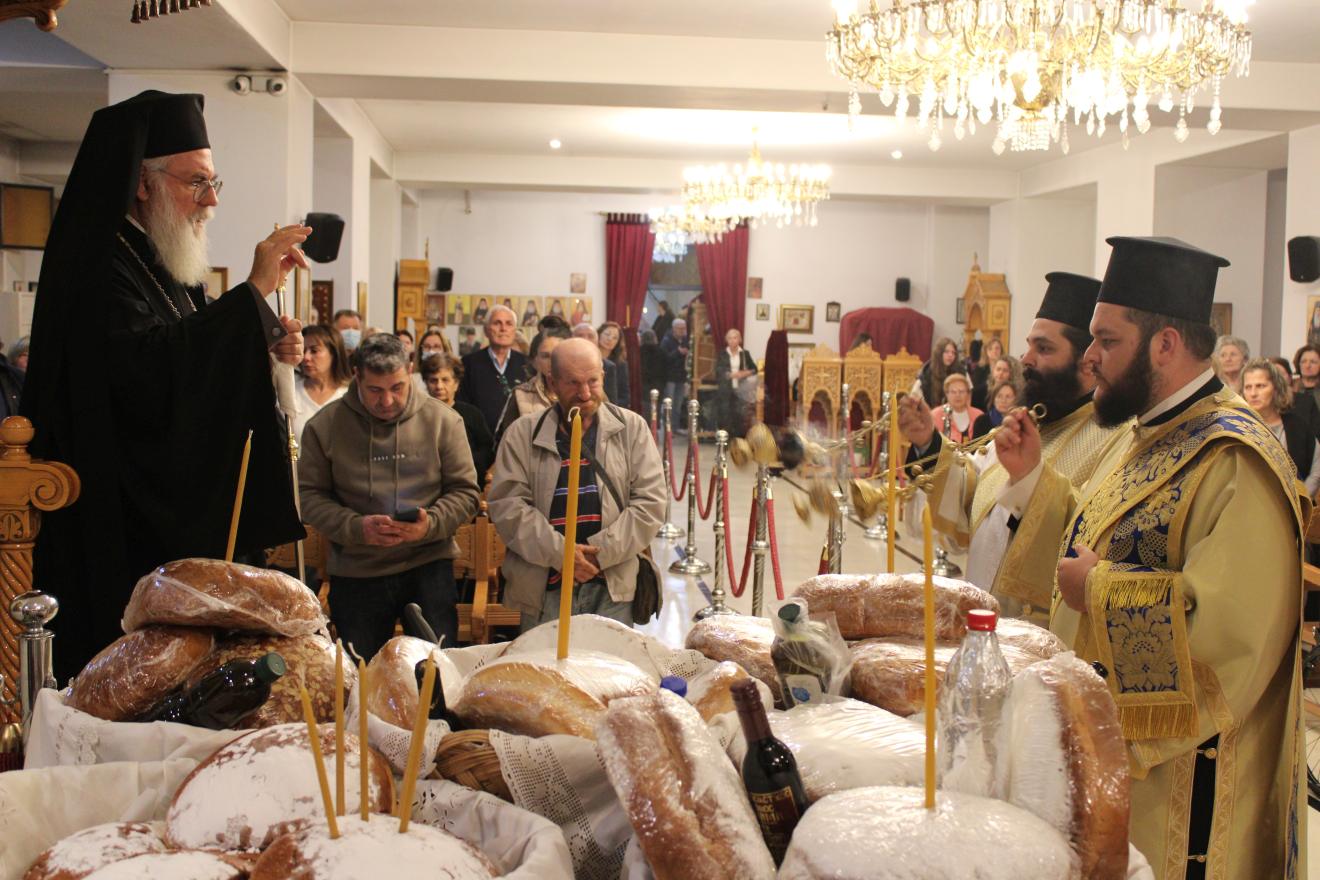 Μετά την ακολουθία της ευλογίας των άρτων ο Σεβασμιώτατος ομίλησε ερμηνεύοντας την διπλή έννοια της λέξης «άγγελοι», αφενός μεν ως απεσταλμένους του θελήματος του Θεού προς τους ανθρώπους και αφετέρου ως όντα που αδιάκοπα δοξολογούν την ένθρονη Αγία Τριάδα.