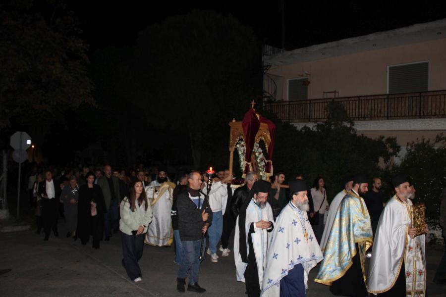 Πριν την απόλυση του Εσπερινού έγινε η λιτάνευση της εικόνος του αγίων Αγγέλων, προπορευομένης της Φιλαρμονικής του Δήμου Αχαρνών.