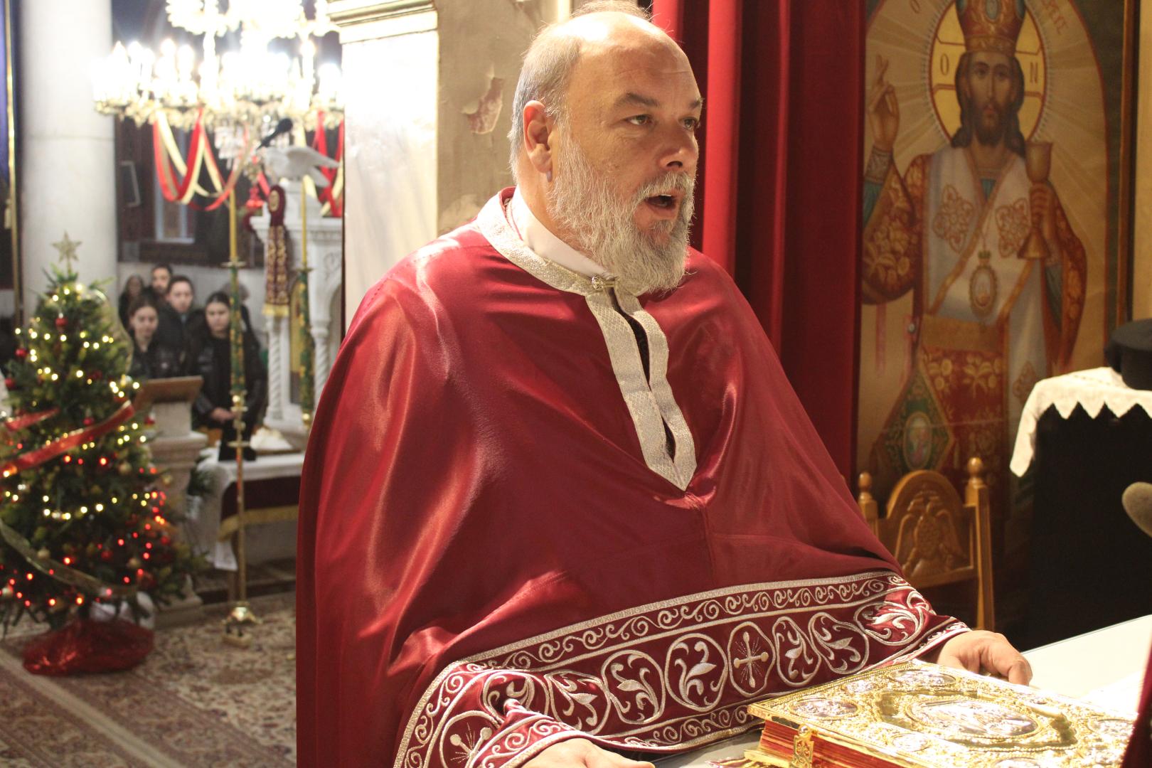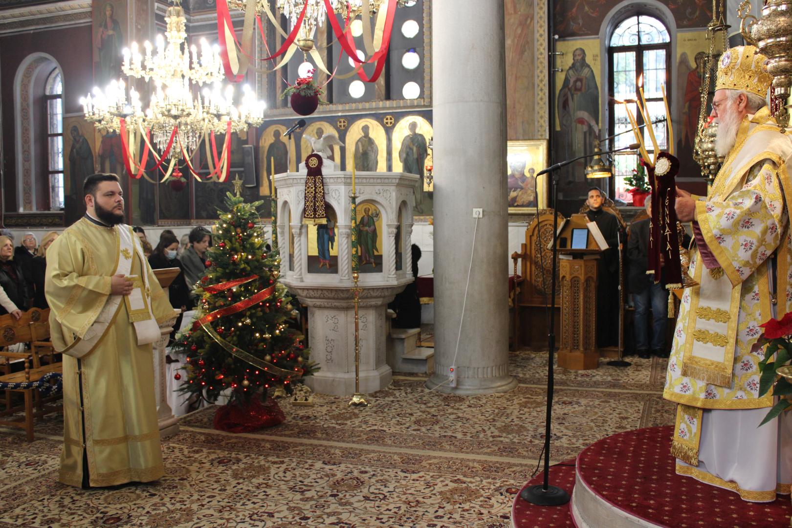 Μετά την ανάγνωση του αποσπάσματος από το Ευαγγέλιο του Αποστόλου Ματθαίου, όπου παρατίθεται ένας κατάλογος των προγόνων κατ’ άνθρωπον του Χριστού, από τον Αδάμ μέχρι του μνήστορος της Παναγίας μας Ιωσήφ, ο Σεβασμιώτατος μίλησε για την αγωνιώδη αναζήτηση ταυτότητας από τους ανθρώπους με την προσπάθειά τους να προσκολληθούν σε κάποιον ισχυρό αυτής της κοινωνίας για να νιώσουν ασφαλείς και δυνατοί και αναφέρθηκε στην πραγματική μας ταυτότητα που πηγάζει από τη γέννηση του Χριστού και την ενσωμάτωσή μας στην Εκκλησία Του με το Βάπτισμα και τη μετοχή μας στα Μυστήριά Της.