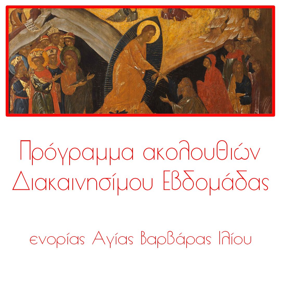 Πρόγραμμα ακολουθιών Διακαινησίμου εβδομάδας Αγίας Βαρβάρας Ιλίου