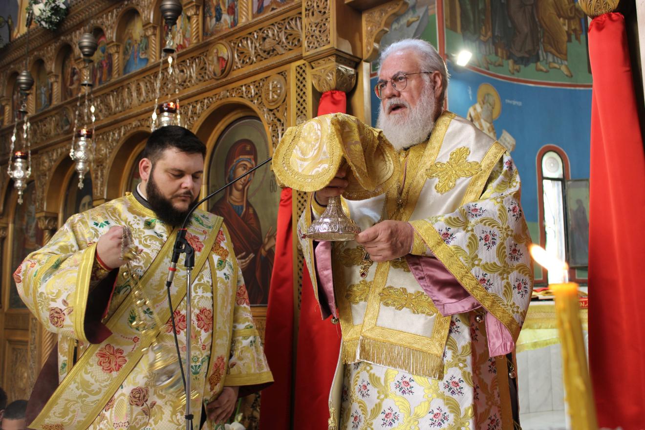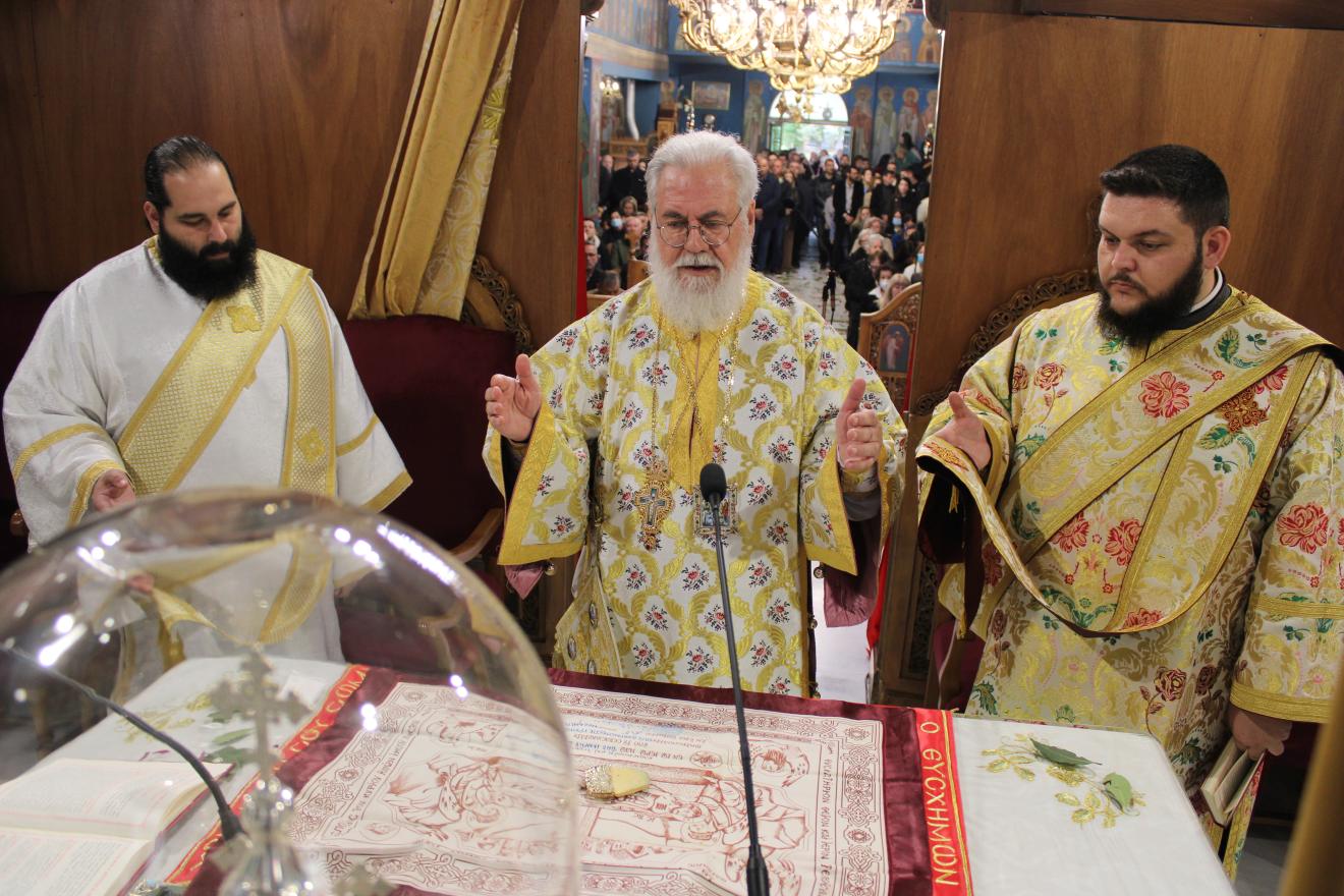 Μετά την απόλυση ο Σεβασμιώτατος διένειμε αντίδωρο στους πιστούς που είχαν κατακλύσει τον Ιερό Ναό ευχόμενος Καλή Ανάσταση και χρόνια πολλα