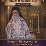Θεία Λειτουργία Προηγιασμένων στον Άγιο Δημήτριο Άνω Λιοσίων