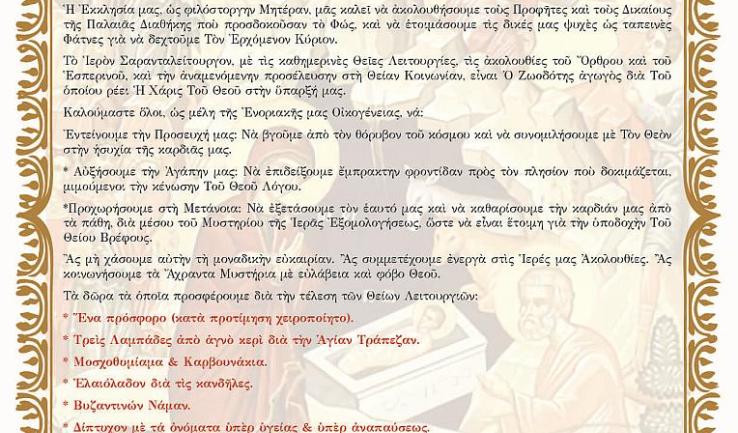 Σαρανταλείτουργο στην Αγία Τριάδα Πετρ.