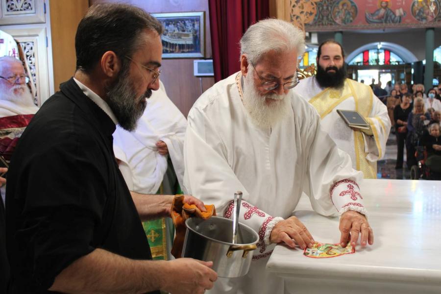 Στο τέλος της λειτουργίας ο Σεβασμιώτατος βοηθούμενος από τους ιερείς, διένειμε το αντίδωρο και το ενθύμιο των εγκαινίων στη πληθύ των πιστών που παρευρέθησαν στον Ιερό Ναό.