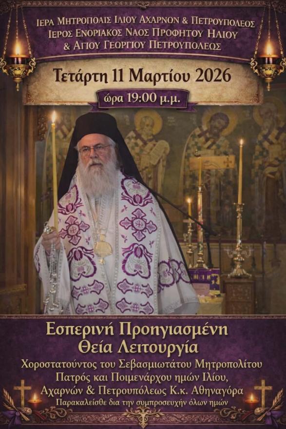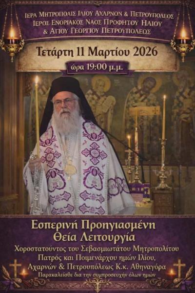Καλώς ήρθατε στην επίσημη ιστοσελίδα της Ιεράς Μητροπόλεως Ιλίου, Αχαρνών και Πετρουπόλεως.