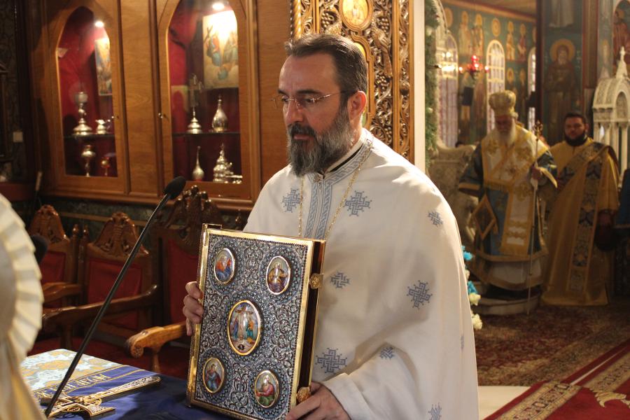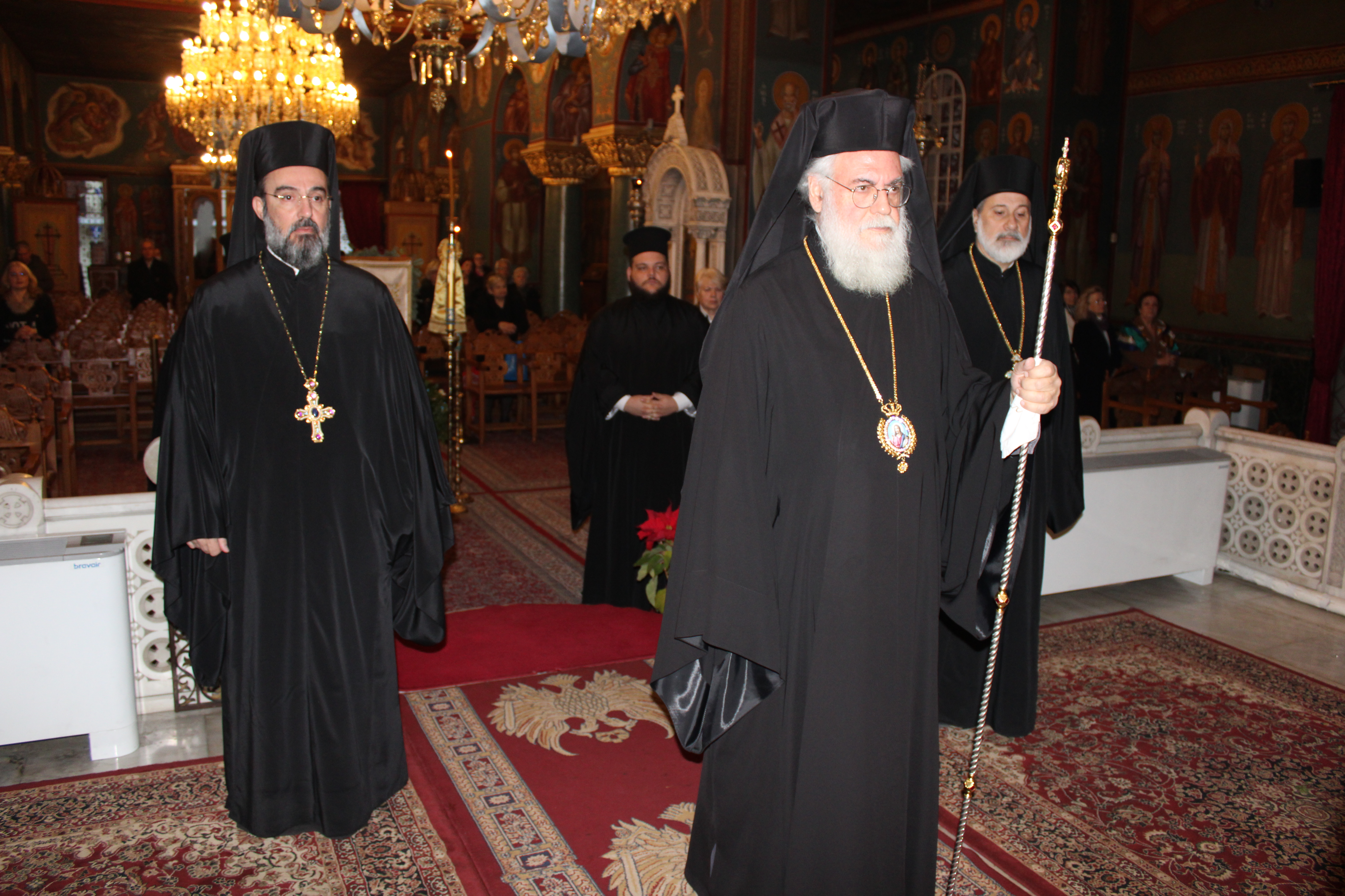 Ήταν συμπαραστατούμενος από τους π. Νικόδημο Αθανασίου, Β’ Γραμματέα της Ιεράς Συνόδου, Πρωτοσύγκελλο της Ιεράς Μητροπόλεως και Πρόεδρο του ΕΣ του Ιερού ναού, τον π. Ιωαννίκιο Γιαννόπουλο, Ιεροκήρυκα της Ιεράς Μητροπόλεως, τον π. Παναγιώτη Γόγολα, Αρχιερατικό Επίτροπο Ιλίου, τους εφημερίους του Ιερού Ναού π. Χαράλαμπο Στακτέα, π. Αναστάσιο Μπαστούνη, π. Εμμανουήλ Μαρκουδάκη και τους διακόνους του π. Άγγελο Μιχαλόπουλο και π. Καλλίνικο Ζωγράφο.